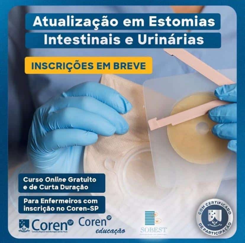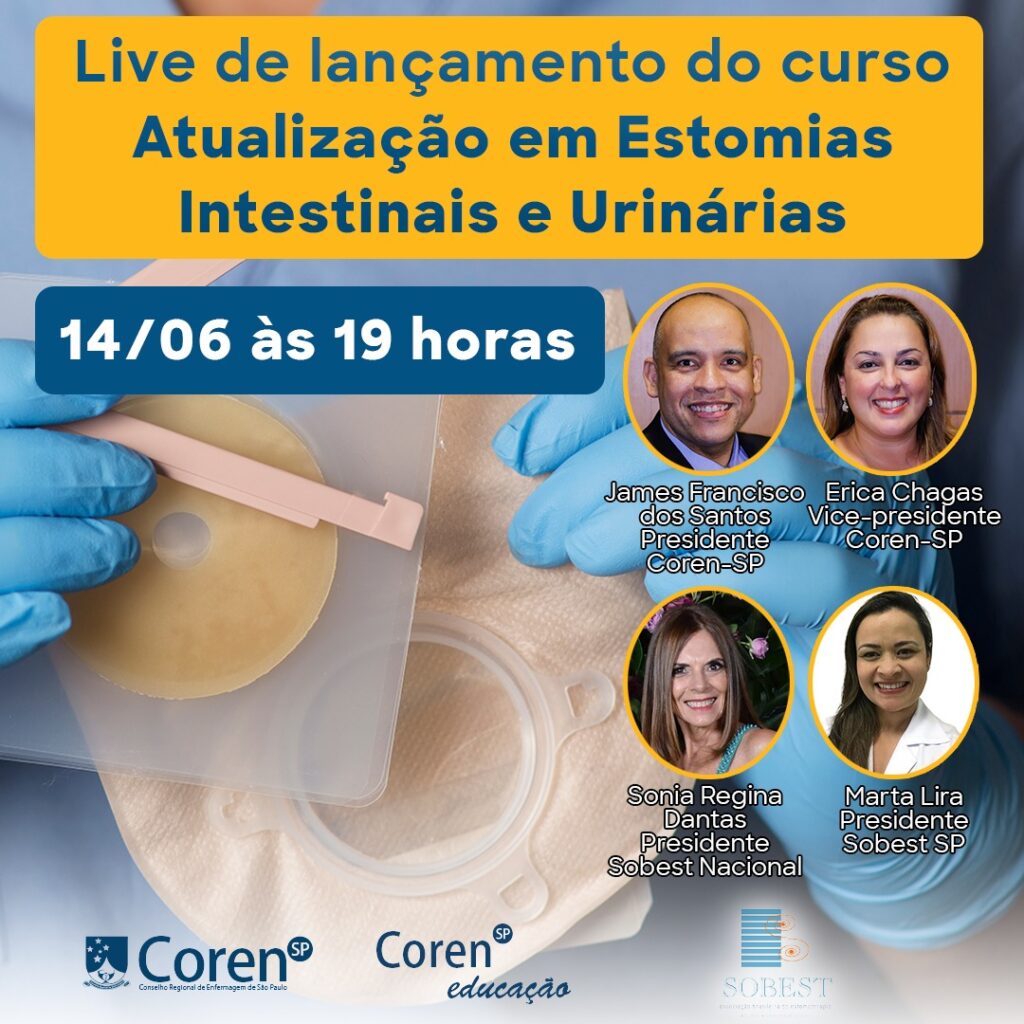 O Coren-SP Educação e a SOBEST lançam nesta quarta-feira o curso “Atualização em estomias intestinais e urinárias” e, no mesmo dia, ocorre também a live de lançamento, que vai detalhar o tema e a estrutura do curso.