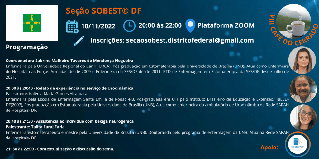 A seção SOBEST® DF convida a todos para o “VIII Café do Cerrado” que abordará a temática Urodinâmica e Assistência a pessoas com bexiga neurogênica.